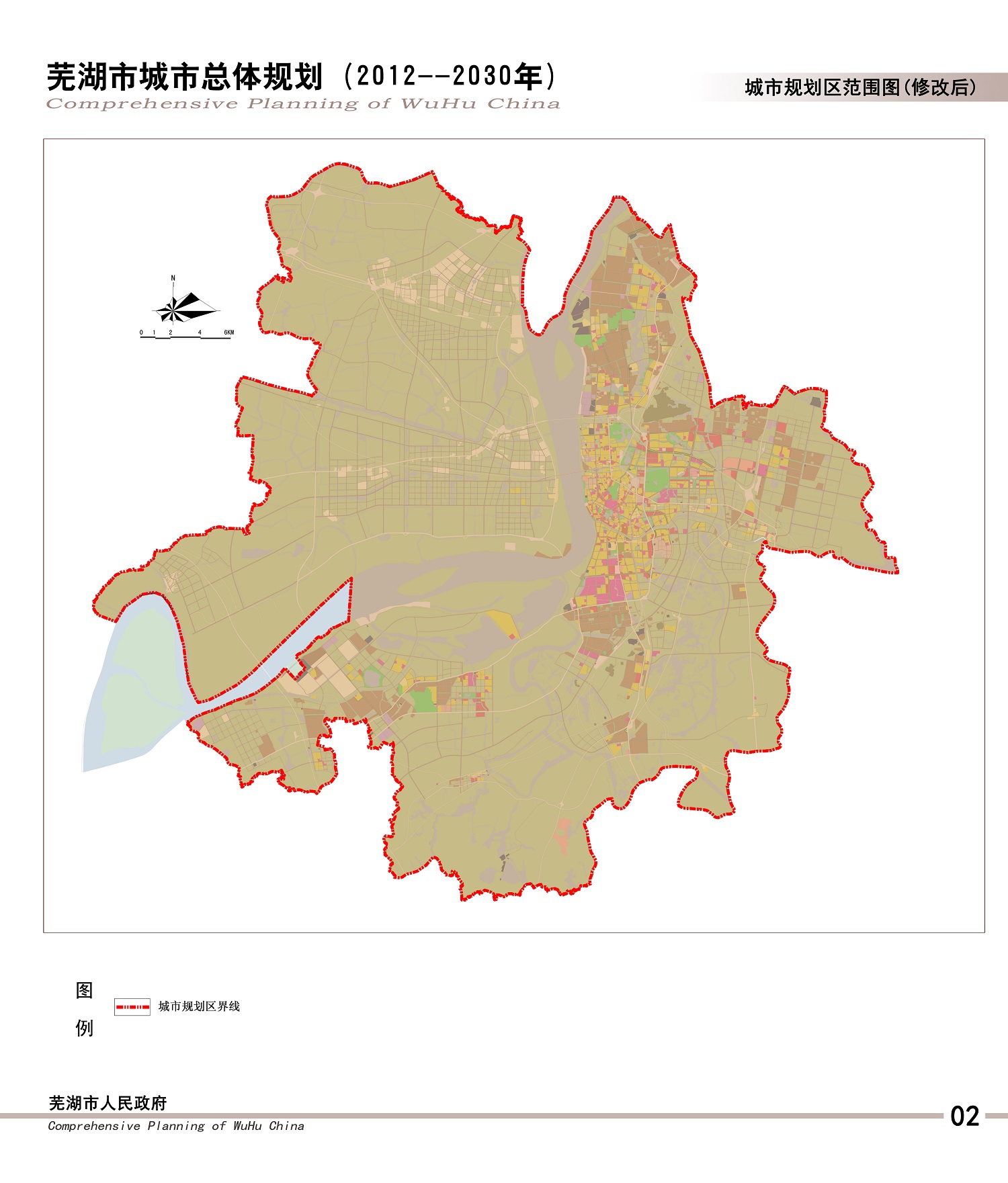 现行总体城市规划区范围为原芜湖市区行政辖区范围,包含二坝镇、汤沟镇和白茆镇辖区范围,总用地面积约1491平方公里。为适应城市规划精细化管理新要求和对规划建设差异化管控需求,满足长江岸线预留战略储备空间和建立市、区分级规划管理的客观要求,本次调整城市规划区在白茆地区的范围,城市规划区范围面积为1418.17平方公里。